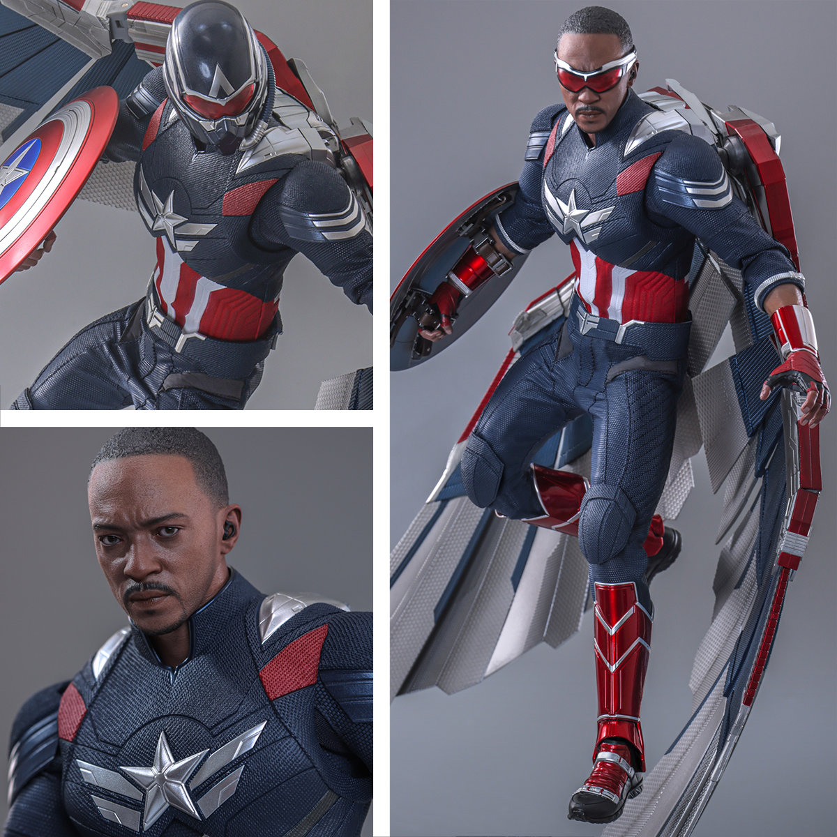 Der Film "Captain America - Brave New World" (2025, Regie: Julius Onah) spielt nach den Ereignissen der Serie "The Falcon and the Winter Soldier" und zeigt, wie Sam Wilson, dargestellt von Anthony Mackie, offiziell das Schild übernimmt und zum neuen Captain America wird. Im Mittelpunkt steht seine Entwicklung in dieser neuen Rolle, als Symbol der Hoffnung und als Anführer in einer zunehmend gespaltenen Welt. Die Handlung dreht sich um eine politische Verschwörung innerhalb der US-Regierung, in der alte Feinde erneut in Erscheinung treten. Wir bieten hier eine sehr aufwendige und hochwertige Hot Toys Captain America Figur. Zur Ausstattung gehören: ein voll beweglicher Körper mit über 30 Gelenken, ein professionell handbemalter und unmaskierter Kopf mit beweglichen Augen, ein weiterer Kopf mit Helm, 8 verschiedene austauschbare Hände, ein sehr aufwendig gefertigter taktischer Anzug, eine blaue Hose mit geprägtem Muster und Knieschützern, ein metallisch-silber-blauer Gürtel, ein metallisch-silber-roter Unterarmschützer, ein Paar Wadenschützer, ein Paar Stiefel, einen Flugrucksack, ein Captain America-Schild mit silbernem Stern-Emblem, eine Fliegerbrille, eine Redwing-Drohne und ein Display-Ständer mit Film-Logo und Namensschild. Ein besonderes Highlight der Figur sind die separat anbringbaren Flügel mit Gelenken, die sich auf beeindruckende 80 cm Spannweite aufklappen lassen. Verpackt ist diese tolle Captain America Figur in einer edlen Sammlerbox.