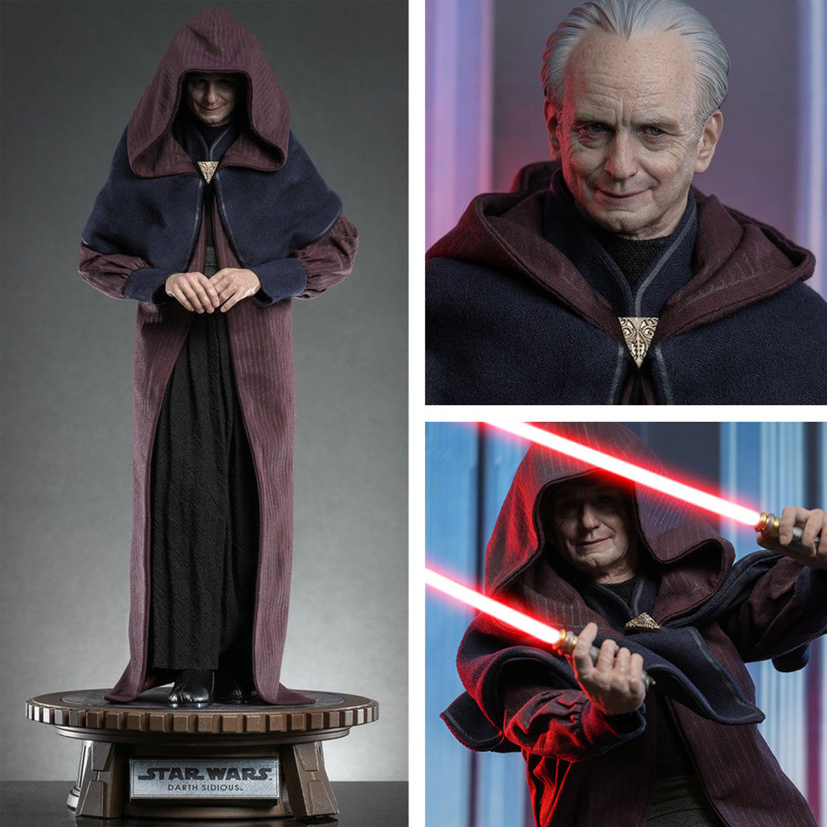 Die Animationsserie "Star Wars - The Clone Wars" lief von 2008 bis 2020 und spielte zwischen Episode II und Episode III. Sie erzählt von den Klonkriegen, zeigt die Klone als individuelle Persönlichkeiten und liefert wichtige Hintergründe zum Fall der Republik. Darth Sidious tritt als manipulativer Strippenzieher im Hintergrund auf. Er führt als Kanzler Palpatine ein doppeltes Spiel und lenkt die Ereignisse der Klonkriege so, dass die Republik schließlich fällt und das Imperium entsteht. Wir bieten hier eine sehr hochwertige und voll bewegliche Darth Sidious Figur. Zur Ausstattung gehören ein sehr authentisch handbemalter Kopf mit beweglichen Augen, ein Körper mit über 30 Gelenken, 8 verschiedene austauschbare Hände, zwei rote Lichtschwerter mit LED-Beleuchtung, zwei zusätzliche Lichtschwertklingen mit Bewegungseffekt, zwei zusätzliche Lichtschwertgriffe ohne Klingen, ein rot-braunes Kapuzengewand mit marineblauem Umhang und Brosche, eine schwarze Tunika mit Gürtel, ein Paar schwarze Stiefel und ein speziell angefertigter Figurenständer mit Namensschild und Star Wars Logo. Verpackt ist die Darth Sidious Figur in einer edlen Sammlerbox.