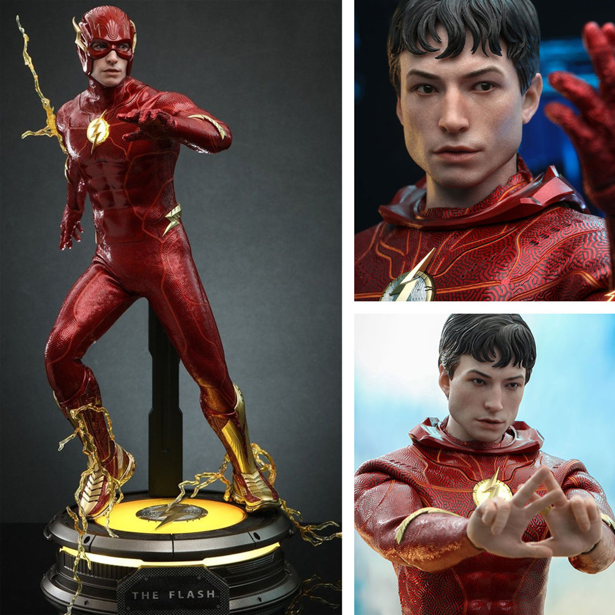 Im Film “The Flash” von 2023 nutzt Barry Allen seine unglaubliche Supergeschwindigkeit, um in der Zeit zurückzureisen und das Schicksal seiner Familie zu verändern. Doch das Experiment geht schief, und Barry landet in einer alternativen Realität, in der General Zod zurückgekehrt ist und die Erde bedroht. Ohne die Unterstützung anderer Superhelden (mit einer Ausnahme) muss Barry die Welt retten und über sich hinauswachsen. Mit Ezra Miller in der Hauptrolle bietet der Film eine Mischung aus atemberaubender Action, emotionaler Tiefe und faszinierenden Zeitreise-Abenteuern. Wir präsentieren hier eine exklusive 1/6 Figur von Ezra Miller als The Flash. Diese hochwertige Figur umfasst einen professionell handbemalten Kopf mit Maske, beweglichen Augen und zwei austauschbaren unteren Gesichtshälften. Zusätzlich gibt es einen unmaskierten Kopf mit beweglichen Augen, einen voll beweglichen Körper mit über 30 Gelenken und acht verschiedene austauschbare Hände. Der metallisch rote The Flash-Anzug ist mit goldgelb leuchtenden, reflektierenden Mustern und einem LED-beleuchteten Emblem auf der Brust ausgestattet. Dazu kommen vier Blitzeffekte für Arme und Beine, ein Blitzeffekt für die Pausenpose, ein aufsetzbarer geöffneter Helm, ein austauschbarer The Flash Helm mit durchsichtiger, orangefarbener Schutzbrille und ein Display-Ständer mit The Flash-Logo und LED-Lichtfunktion. Verpackt ist diese beeindruckende The Flash Figur in einer edlen Sammlerbox.